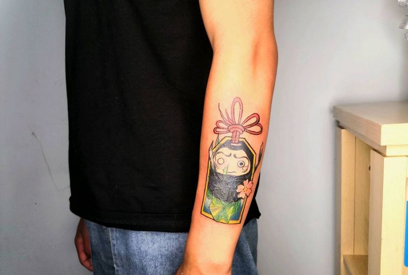 当前位置: 首页 >河南省新乡市纹身店-爱刺青纹身图案>遮盖增生旧纹身纹身图片_手臂New School福牌达摩蛋纹身图案