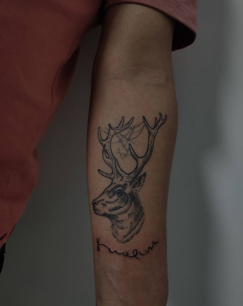 去年的鹿,今年添加英文纹身图片_手臂纹身图案