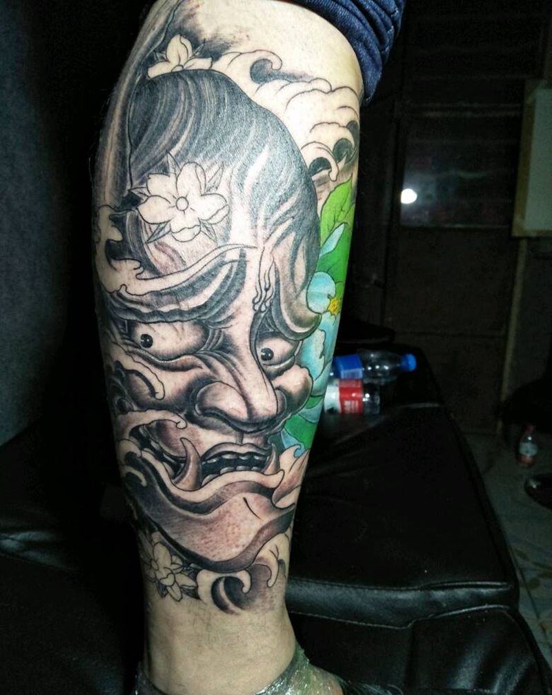 • T包小腿吹火男+阿多福纹身图片_腿部老传统新传统吹火男阿
