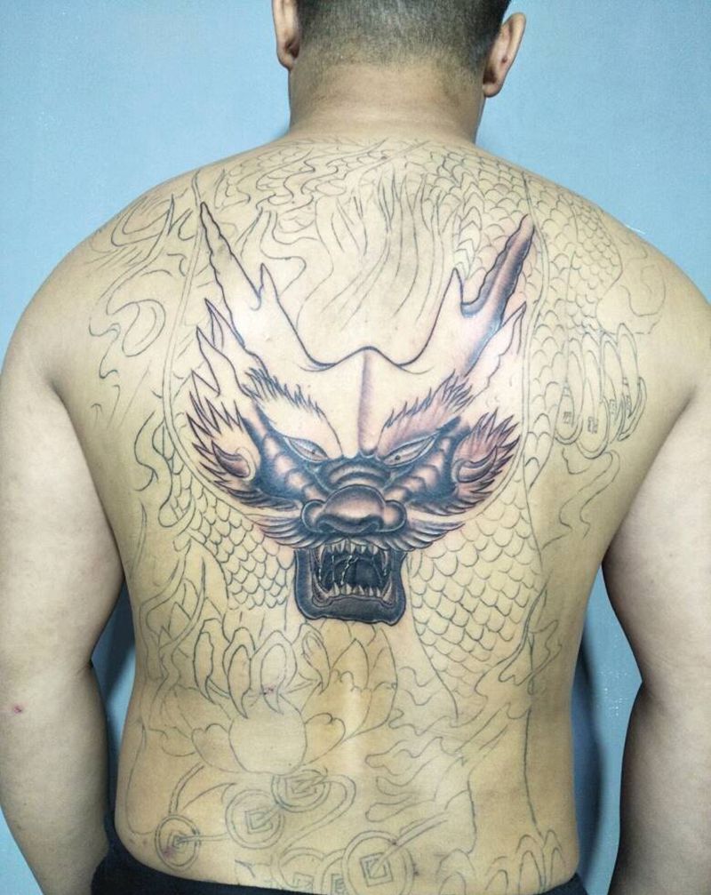 • T云龙九郎纹身图片_背部老传统云龙九郎纹身图案