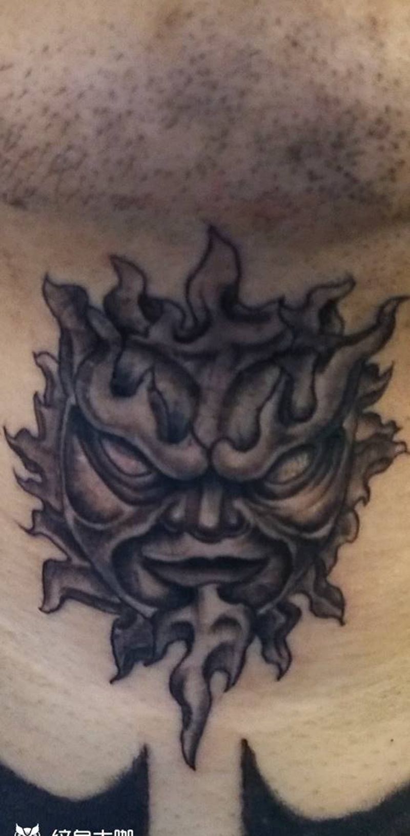 今工脖子全程圆3,精神已崩溃!纹身图片_颈部纹身图案