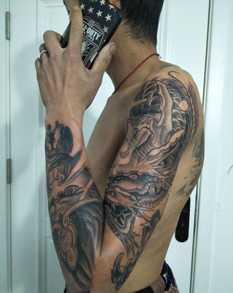 • T网红王老大花腿龙纹身图片_腿部新传统纹身图案
