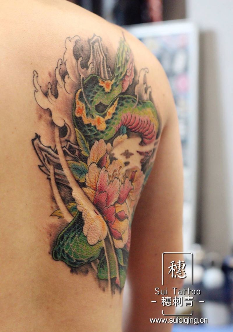 • 纹身吧推荐的披肩图腾半胛纹身图案作品展示