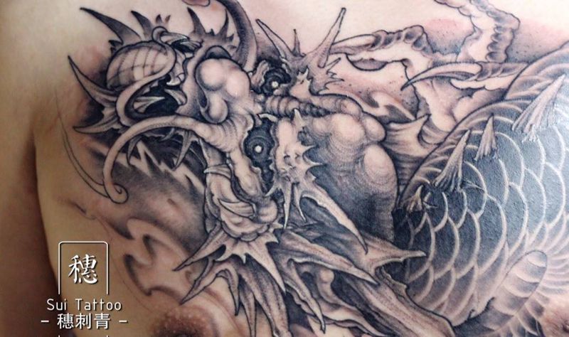 当前位置: 首页 >河南省新乡市纹身店-穗刺青-Sui Tattoo纹身图案>龙花胸遮盖纹身图片