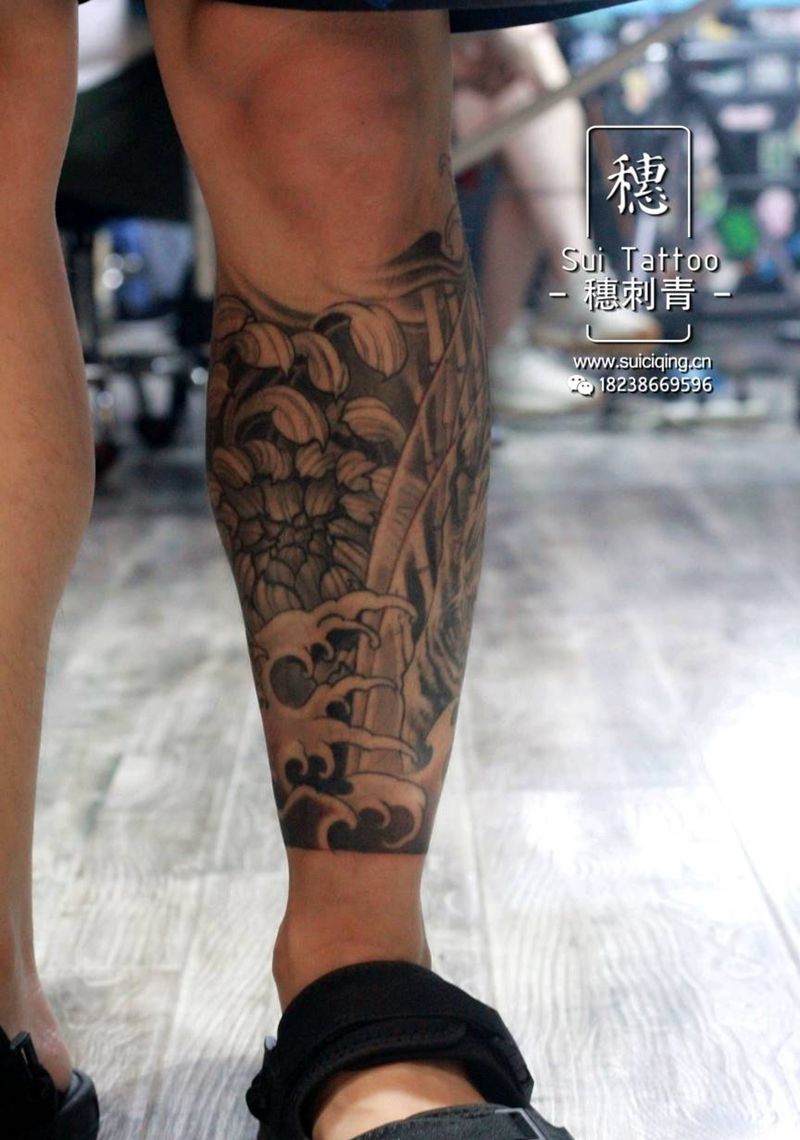 • T网红王老大花腿龙纹身图片_腿部新传统纹身图案