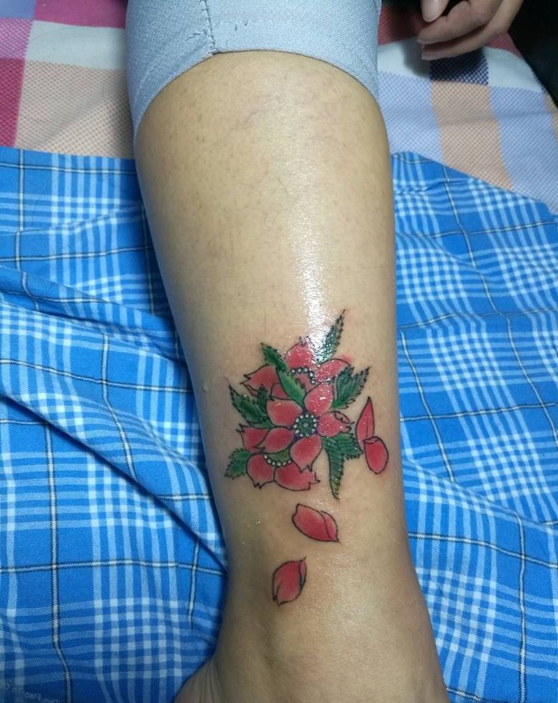 • T网红王老大花腿龙纹身图片_腿部新传统纹身图案