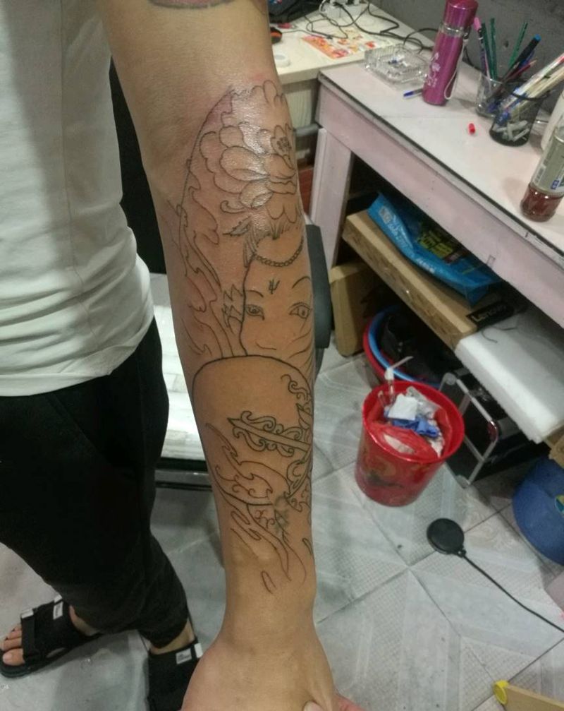 一组15张莲花纹身手