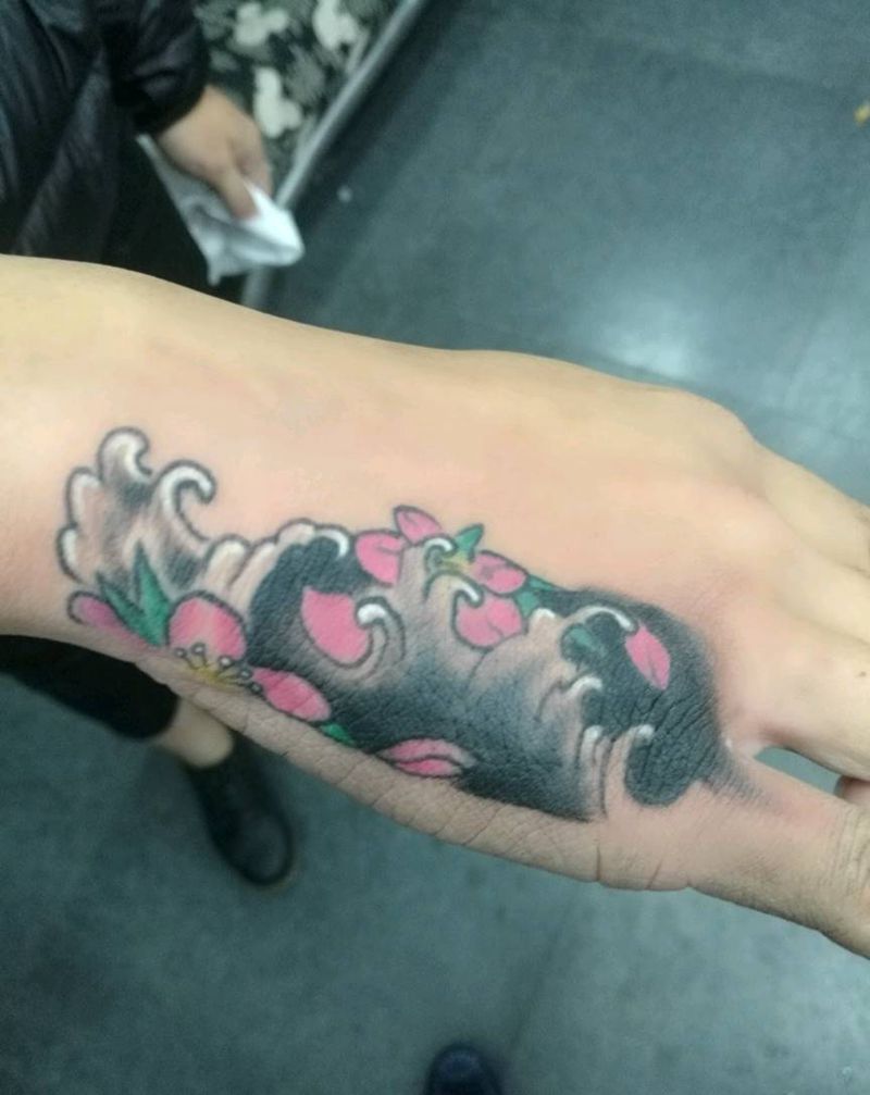 • 手背潮流时尚的玫瑰花眼睛纹身图案