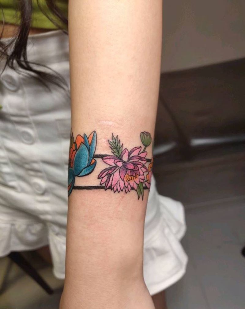 当前位置: 首页 >河南省濮阳市纹身店-葉刺青工作室纹身图案>花手环纹身图片_手臂New School纹身图案