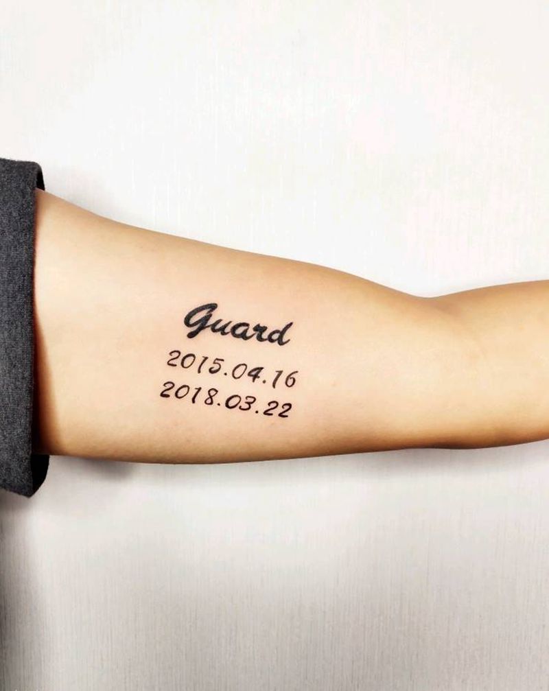 当前位置: 首页 >河南省濮阳市纹身店-葉刺青工作室纹身图案>孩子生日纹身图片_手臂花体字纹身图案