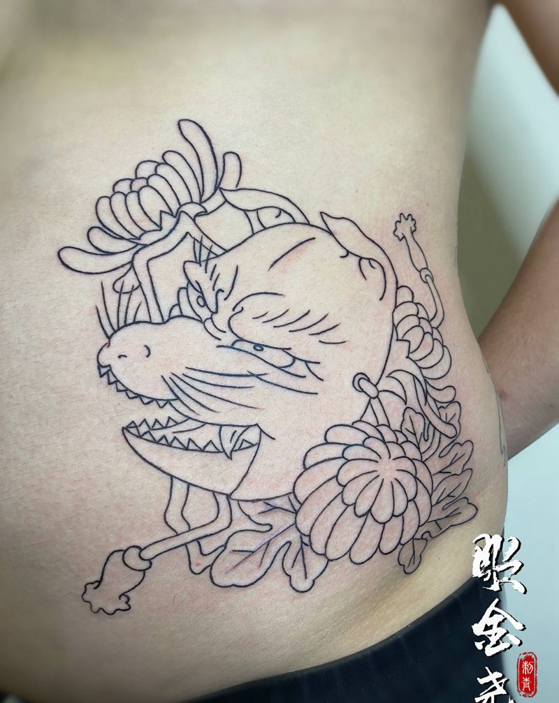 • T网红王老大花腿龙纹身图片_腿部新传统纹身图案