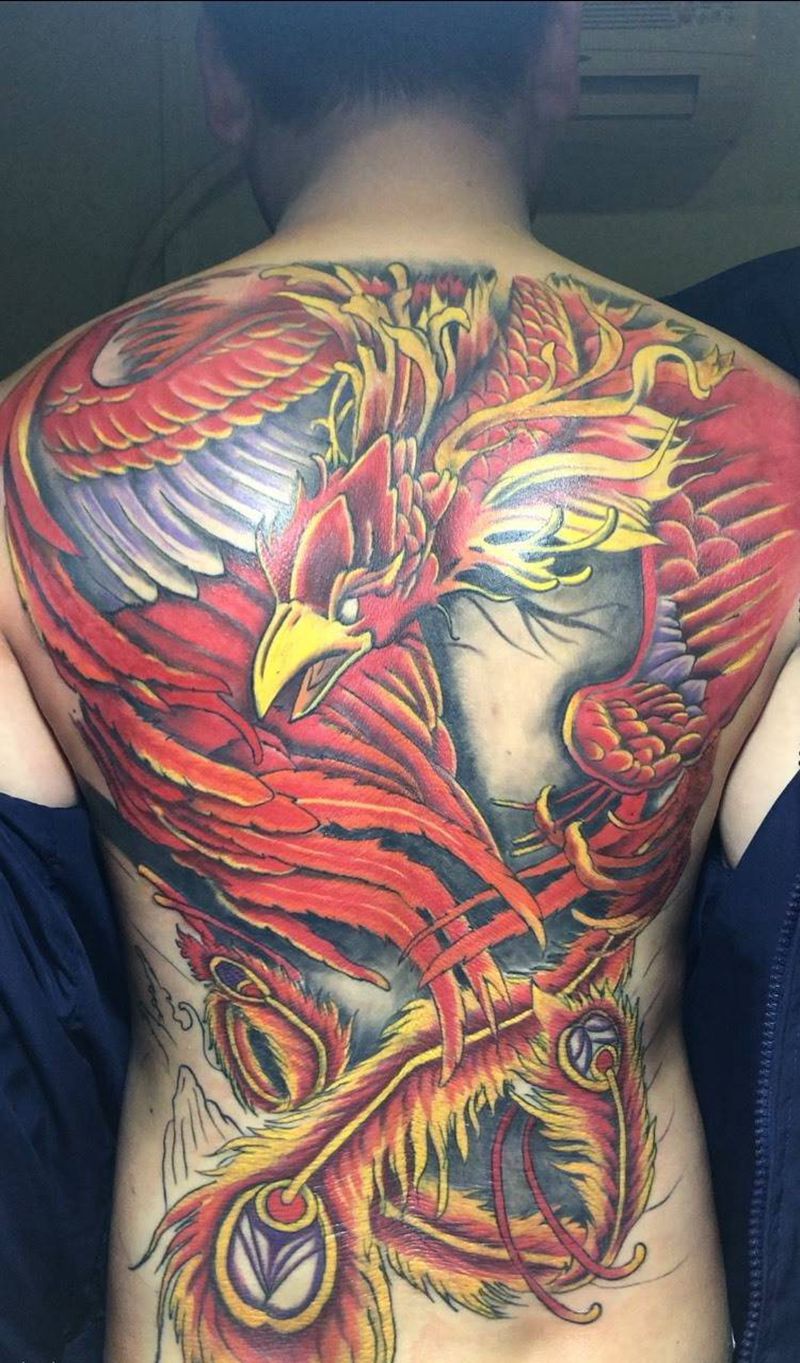 当前位置: 首页 >河南省焦作市纹身店-蝈蝈刺青纹身图案>满背凤凰 ➕vx 5472纹身图片