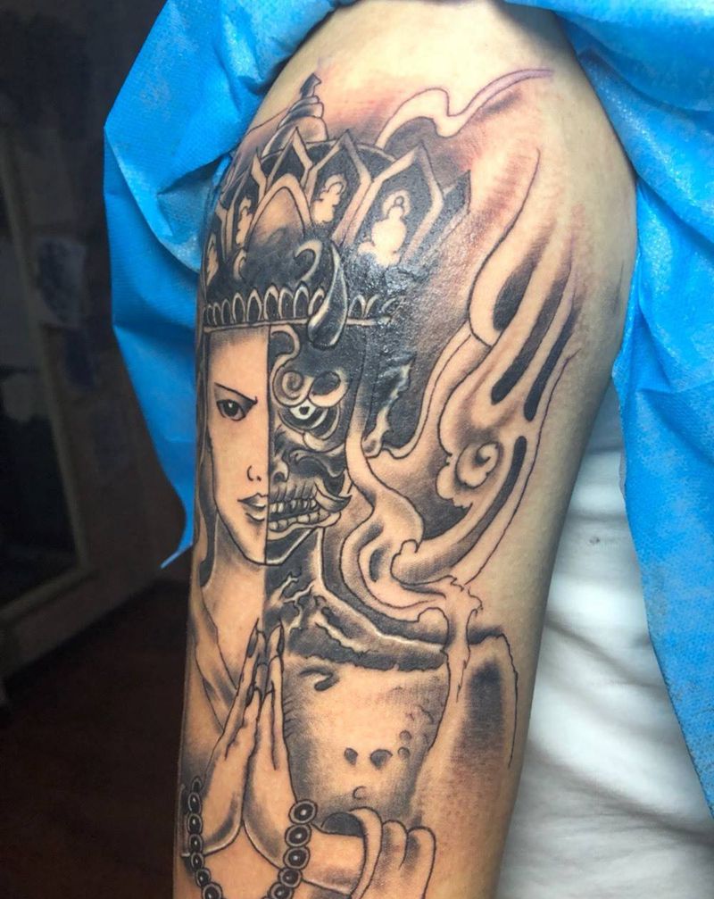 当前位置: 首页 >河南省焦作市纹身店-蝈蝈刺青纹身图案>大臂一念之间纹身图片