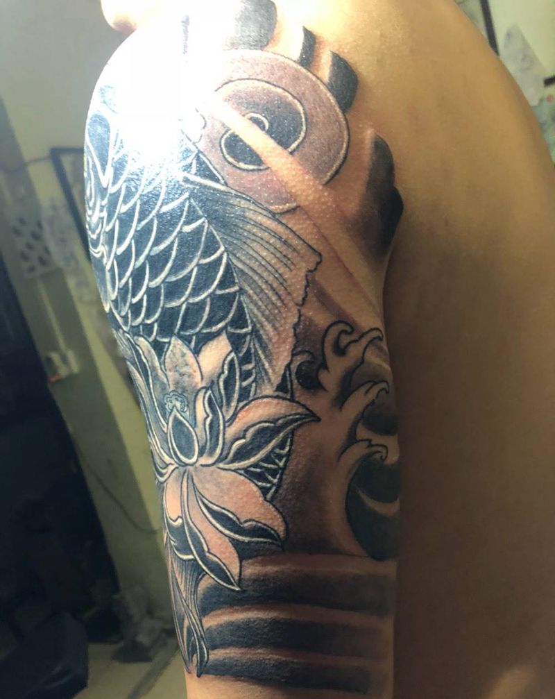 当前位置: 首页 >河南省焦作市纹身店-蝈蝈刺青纹身图案>大臂鲤鱼遮盖旧图纹身图片