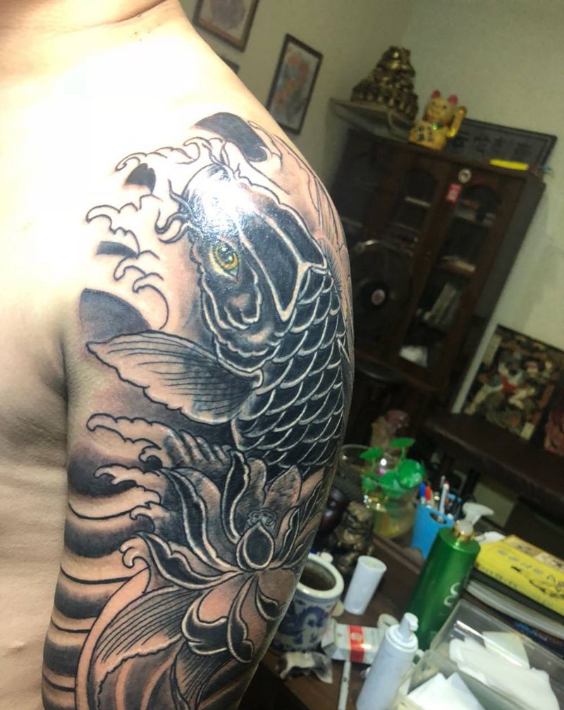 当前位置: 首页 >河南省焦作市纹身店-蝈蝈刺青纹身图案>大臂鲤鱼遮盖旧图纹身图片