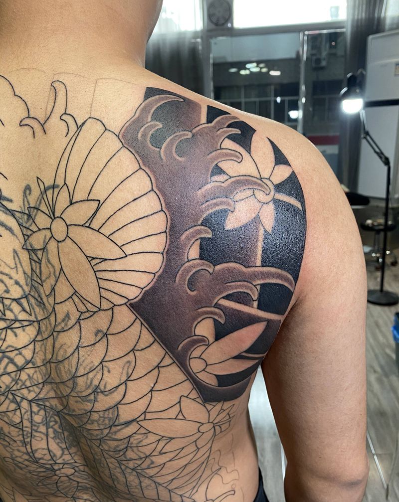 • 纹身吧推荐的披肩图腾半胛纹身图案作品展示