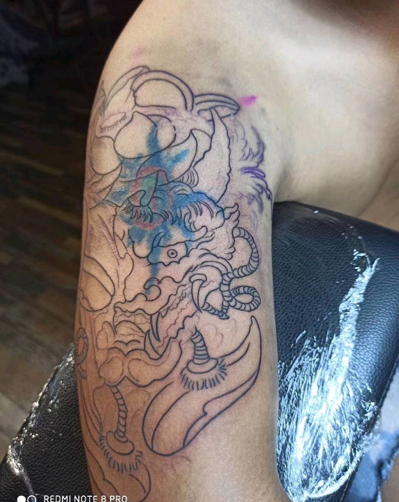 当前位置: 首页 >河南省濮阳市纹身店-星火刺青纹身图案>般若遮盖纹身图片_手臂新传统纹身图案
