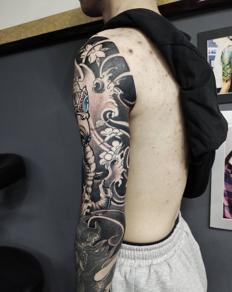当前位置: 首页 >河南省许昌市纹身店-恒墨·刺青纹身图案>修改象神纹身图片_新传统修改纹身图案