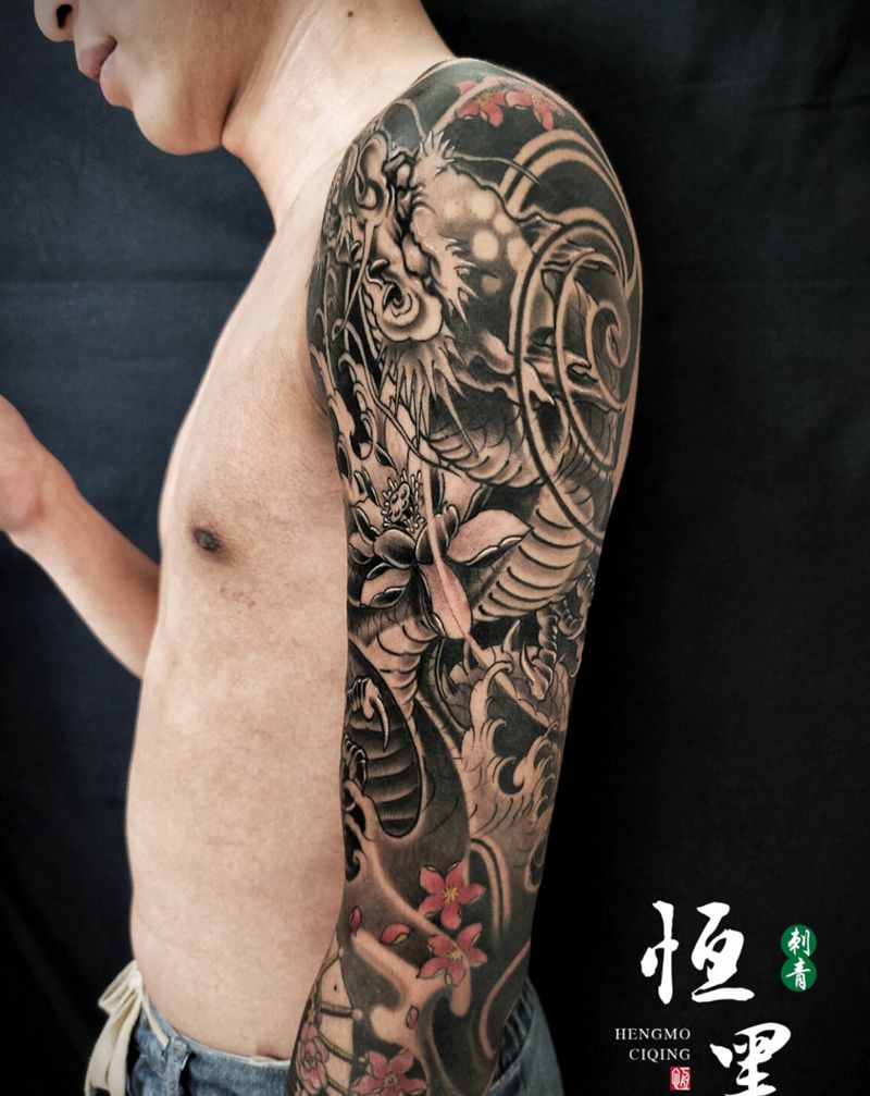 当前位置: 首页 >河南省许昌市纹身店-恒墨·刺青纹身图案>龙凤艺伎花臂纹身图片_手臂新传统纹身图案