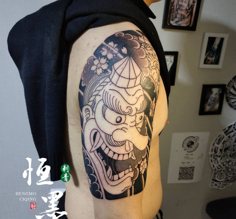 天狗 班诺花臂纹身图片_手臂新传统老传统纹身图案