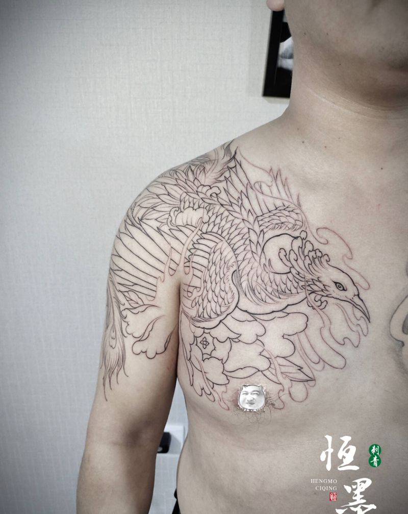 当前位置: 首页 >河南省许昌市纹身店-恒墨·刺青纹身图案>凤凰纹身图片_胸部背部新传统纹身图案