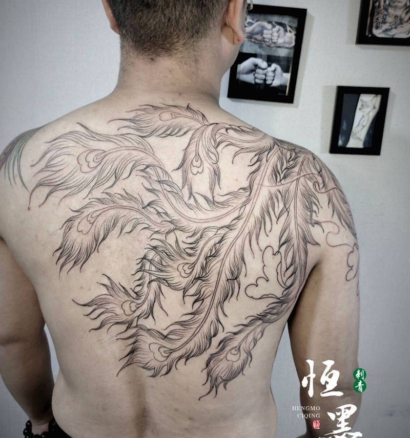 黑灰满背纹身图案