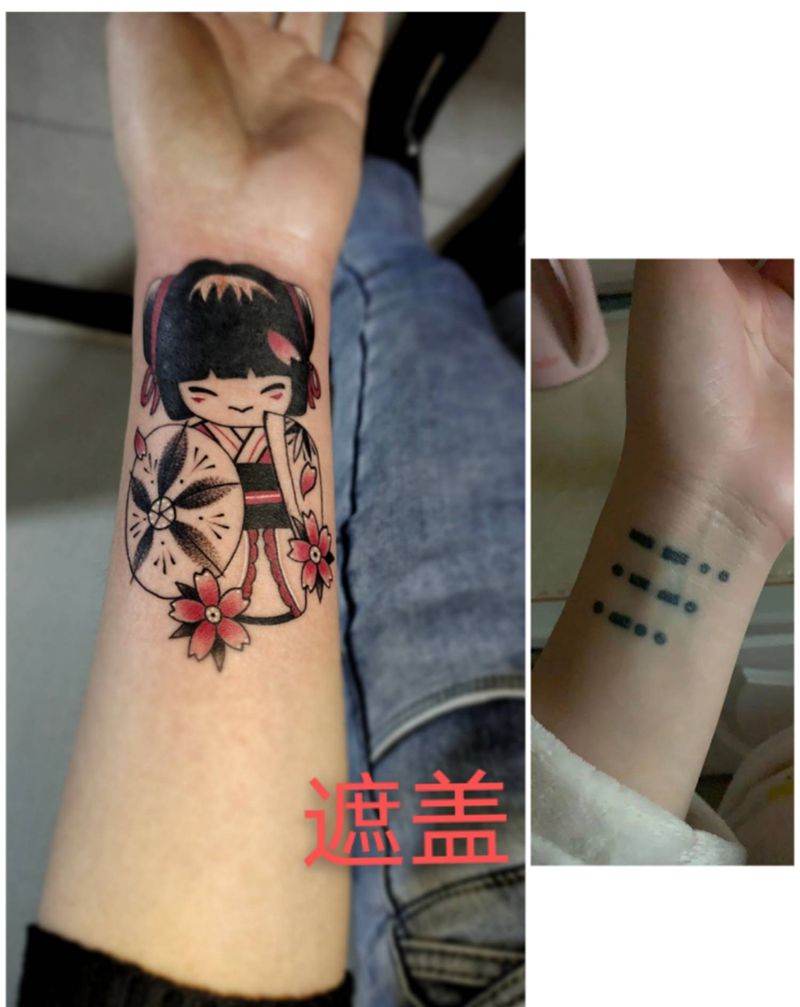当前位置: 首页 >河南省许昌市纹身店-恒墨·刺青纹身图案>卡通艺伎纹身图片_手臂点刺图腾纹身图案