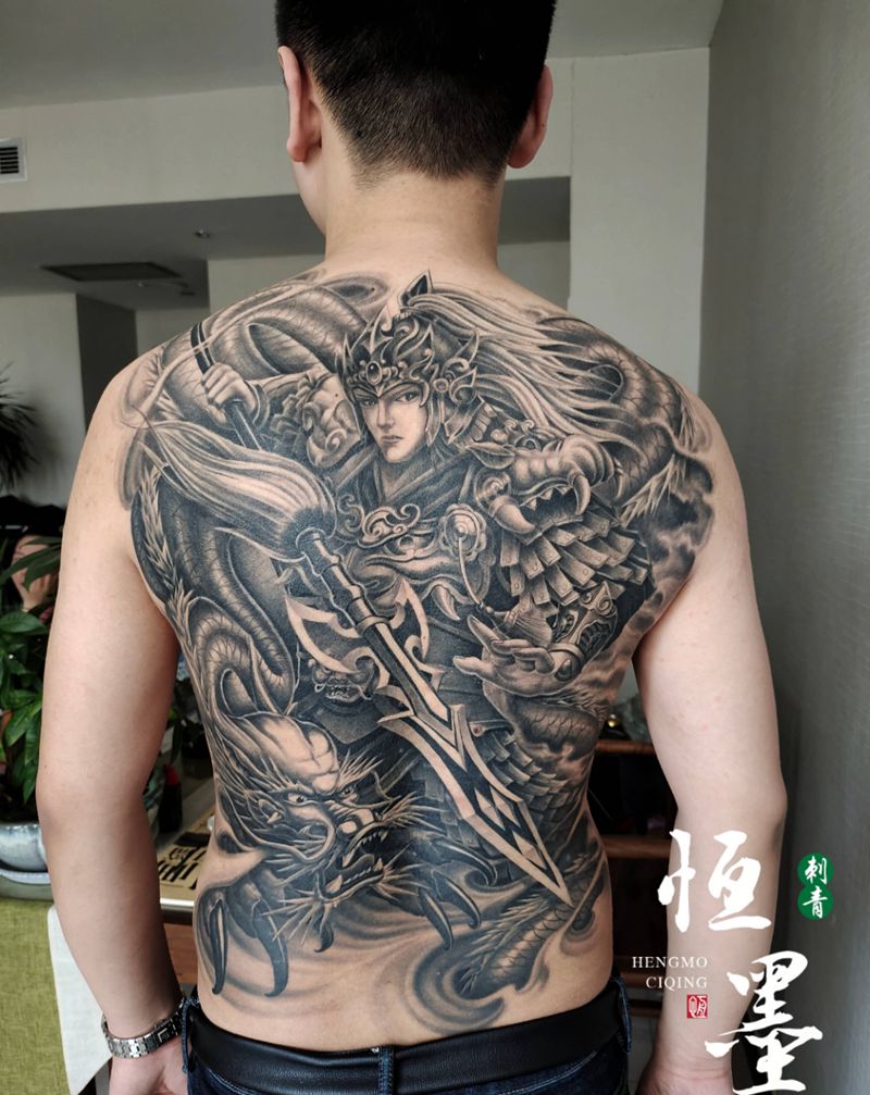 当前位置: 首页 >河南省许昌市纹身店-恒墨·刺青纹身图案>赵云满背纹身图片_背部新传统赵子龙赵云纹身图案
