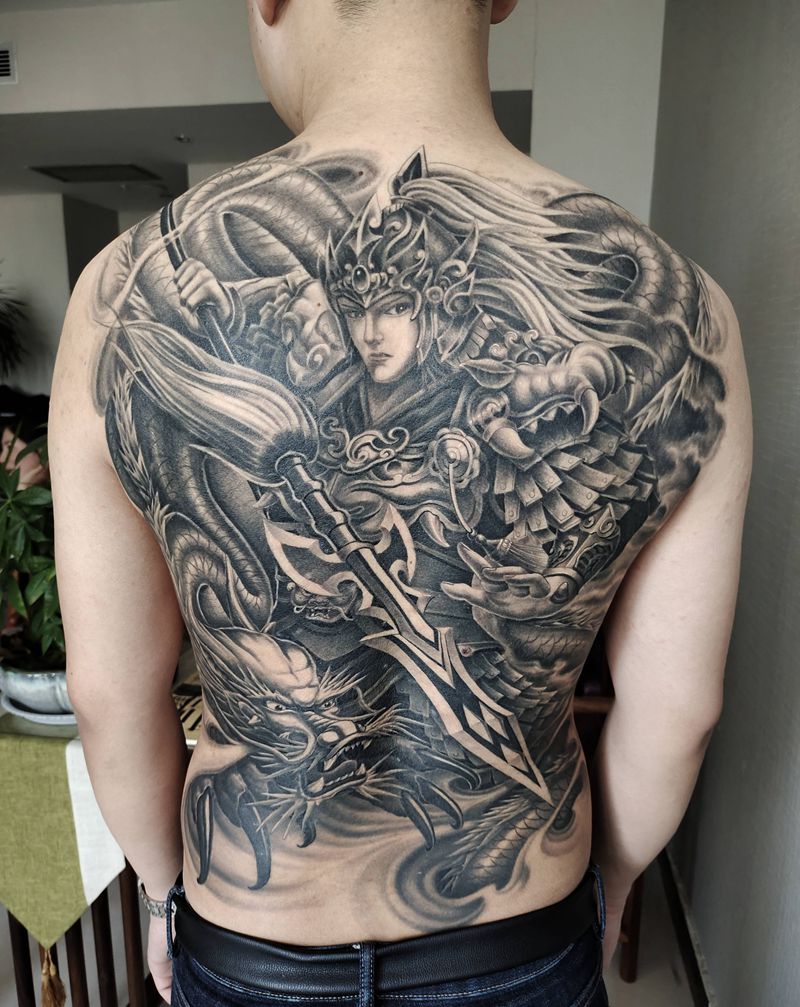 当前位置: 首页 >河南省许昌市纹身店-恒墨·刺青纹身图案>赵云满背纹身图片_背部新传统赵子龙赵云纹身图案