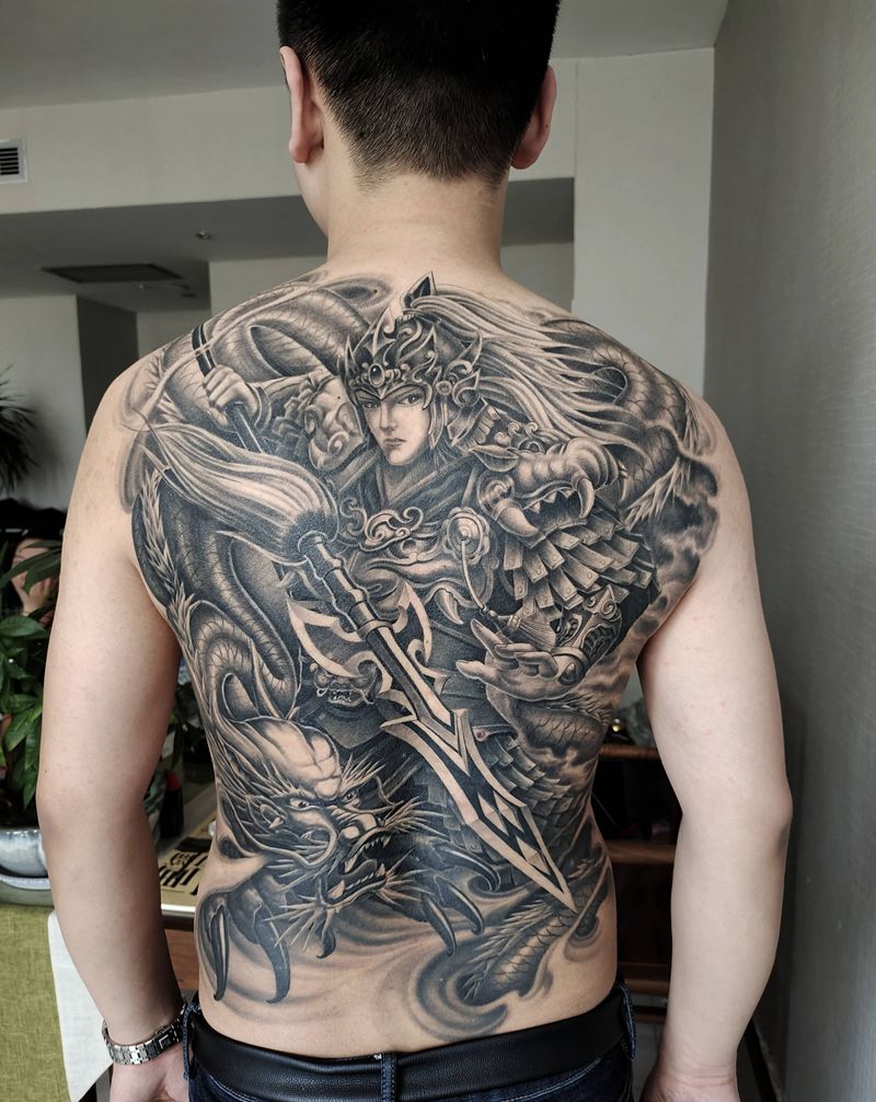 当前位置: 首页 >河南省许昌市纹身店-恒墨·刺青纹身图案>赵云满背纹身图片_背部新传统赵子龙赵云纹身图案