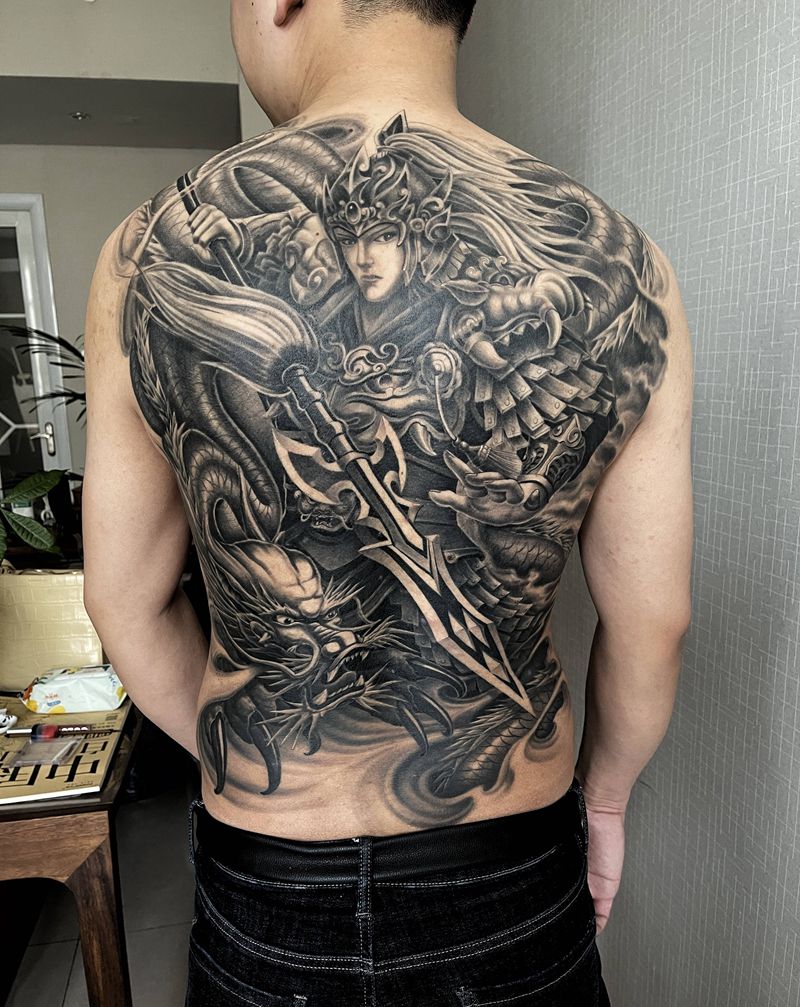 当前位置: 首页 >河南省许昌市纹身店-恒墨·刺青纹身图案>赵云满背纹身图片_背部新传统赵子龙赵云纹身图案