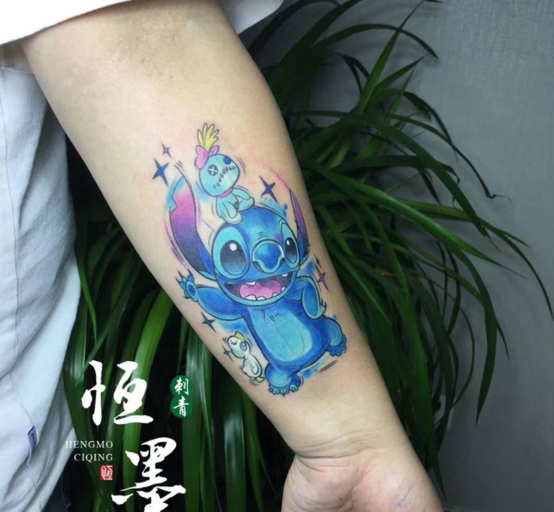 当前位置: 首页 >河南省许昌市纹身店-恒墨·刺青纹身图案>史迪奇纹身图片_手臂New School水彩纹身图案