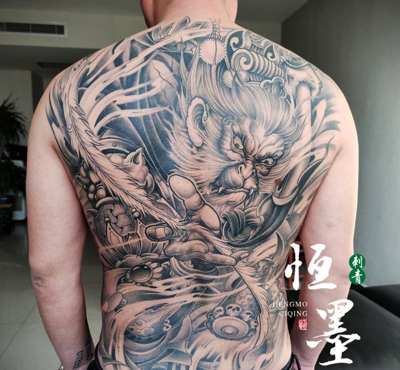 齐天大圣纹身图片_背部新传统齐天大圣纹身图案