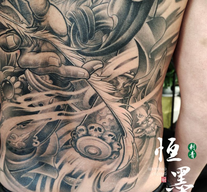 黑灰满背纹身图案