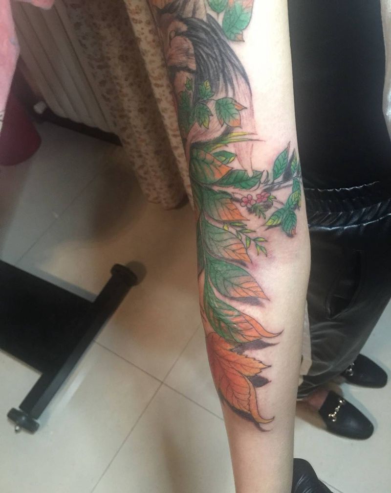 当前位置: 首页 >河南省许昌市纹身店-禹州秋墨坊纹身纹绣培训机构纹身图案>麋鹿花臂纹身图片_成品手臂清新动物静物原创纹身图案