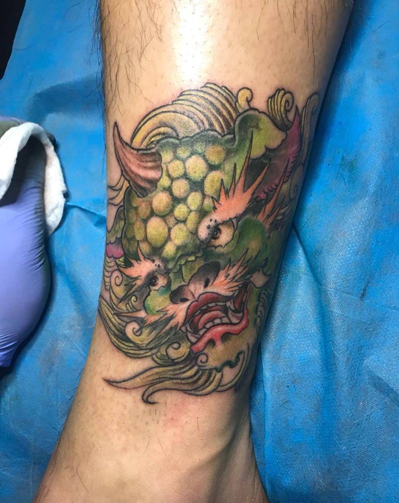 脚踝唐狮纹身图片