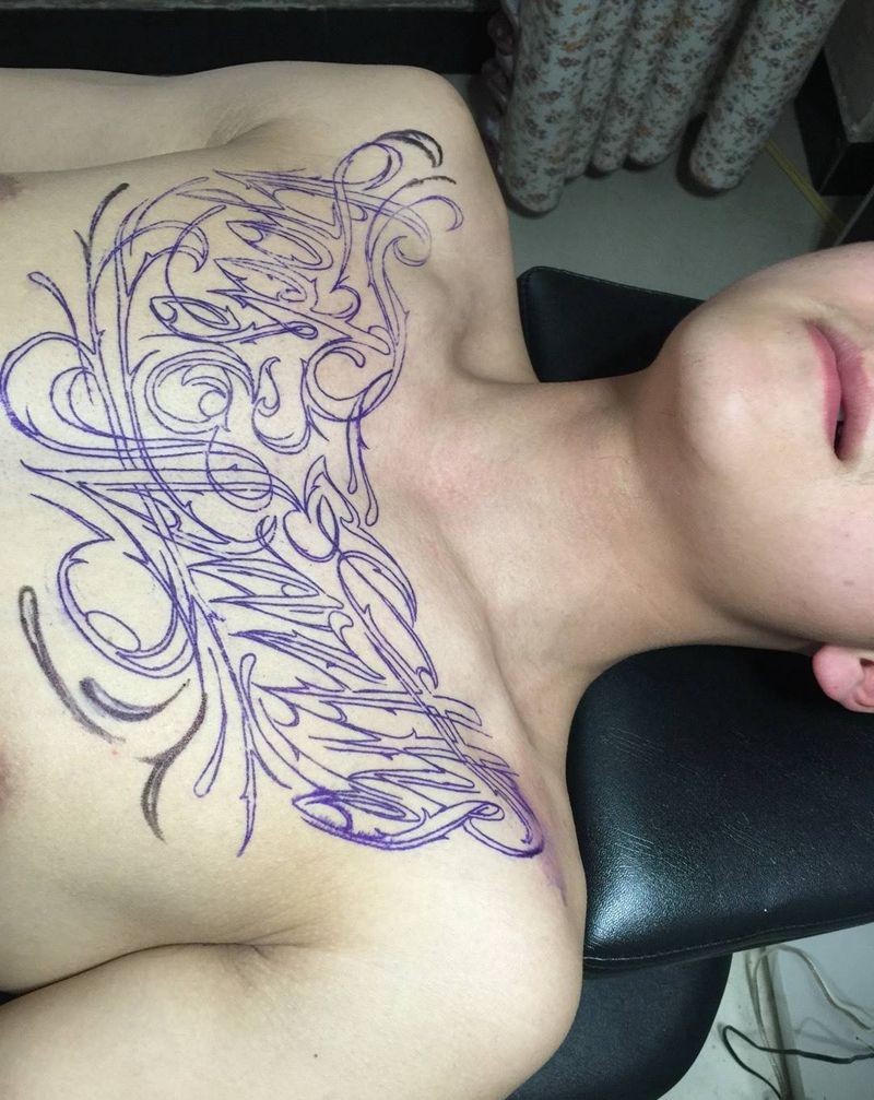 当前位置: 首页 >河南省许昌市纹身店-禹州秋墨坊纹身纹绣培训机构纹身图案>英文花胸纹身图片