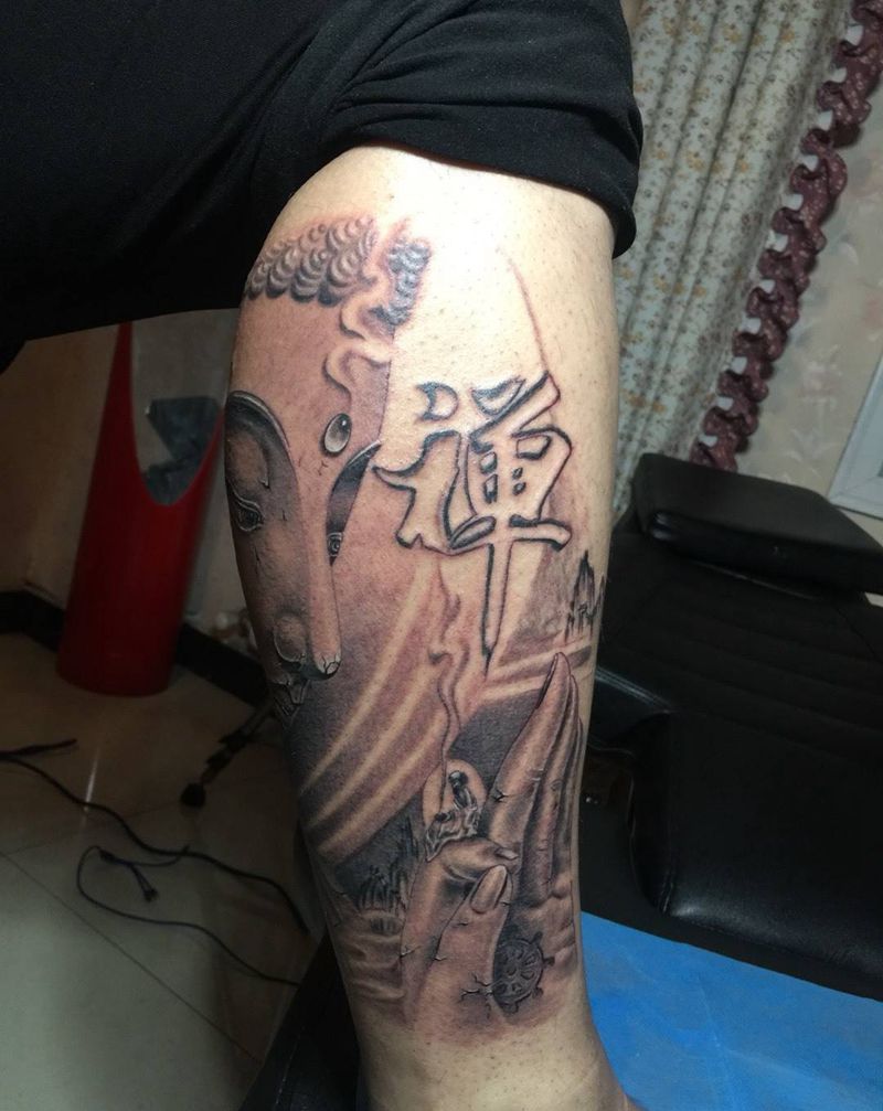 当前位置: 首页 >河南省许昌市纹身店-禹州秋墨坊纹身纹绣培训机构纹身图案>小腿如来纹身图片