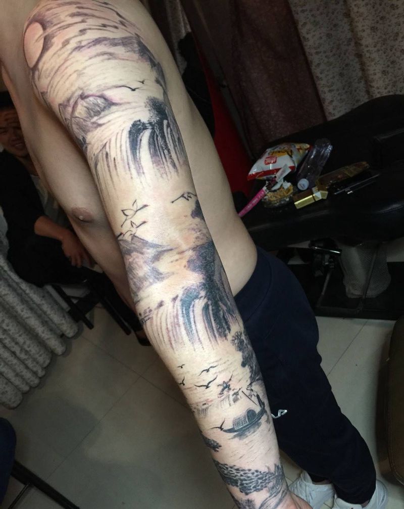 当前位置: 首页 >河南省许昌市纹身店-禹州秋墨坊纹身纹绣培训机构纹身图案>山水花臂纹身图片
