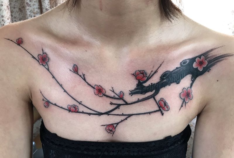 • 女性大花胸纹身_43张霸气漂亮的女性大花胸纹身图案作品
