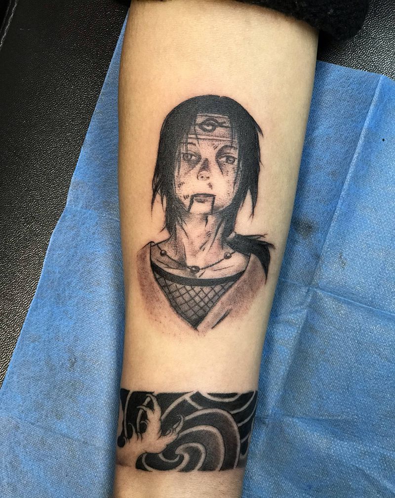臂环忍者纹身图片_手臂新传统动漫纹身图案