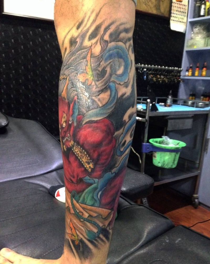 • T网红王老大花腿龙纹身图片_腿部新传统纹身图案