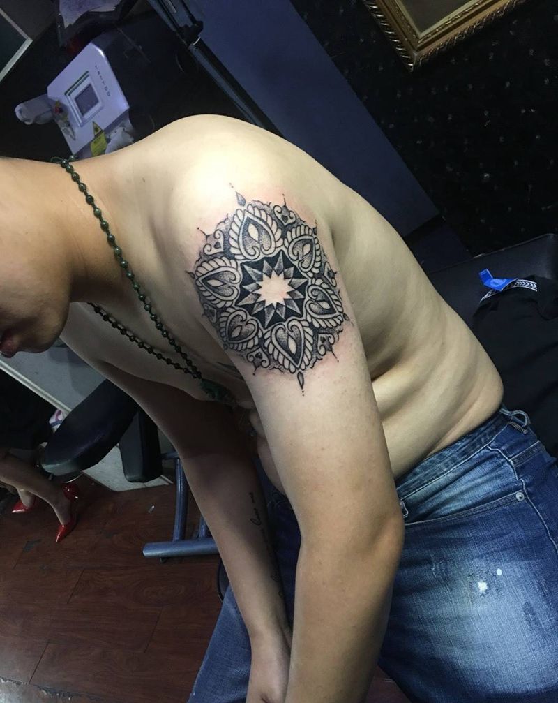 • 纹身吧推荐的披肩图腾半胛纹身图案作品展示