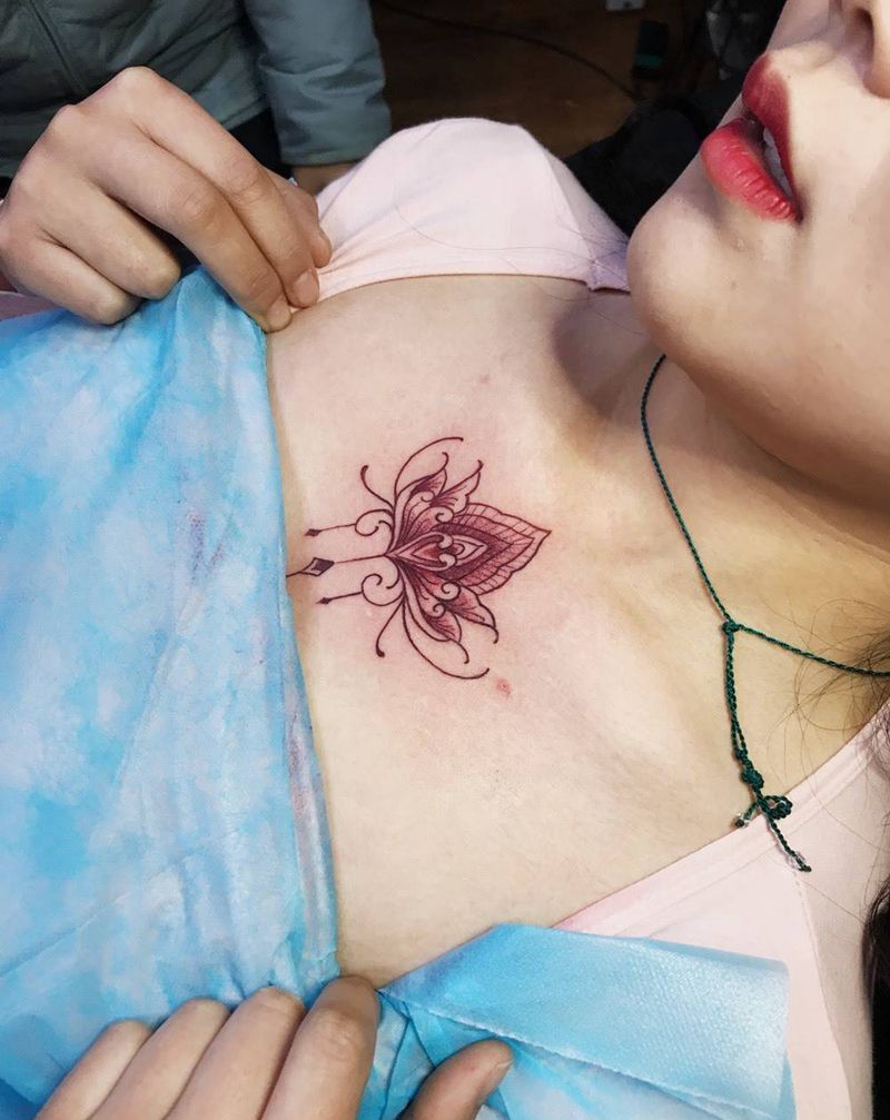 • 女性大花胸纹身_43张霸气漂亮的女性大花胸纹身图案作品
