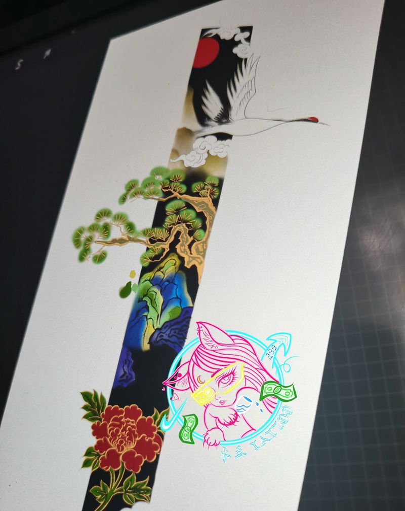 原创国风水墨仙鹤纹身纹身图片_手臂新传统水墨仙鹤青山原创纹身图案