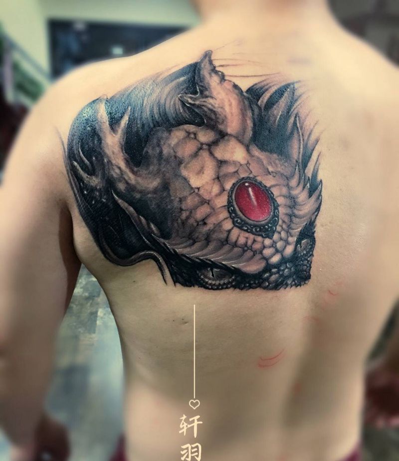 当前位置: 首页 >河南省南阳市纹身店-羽君纹身纹身图案>龙爷纹身图片_成品背部写实鬼神国画纹身图案