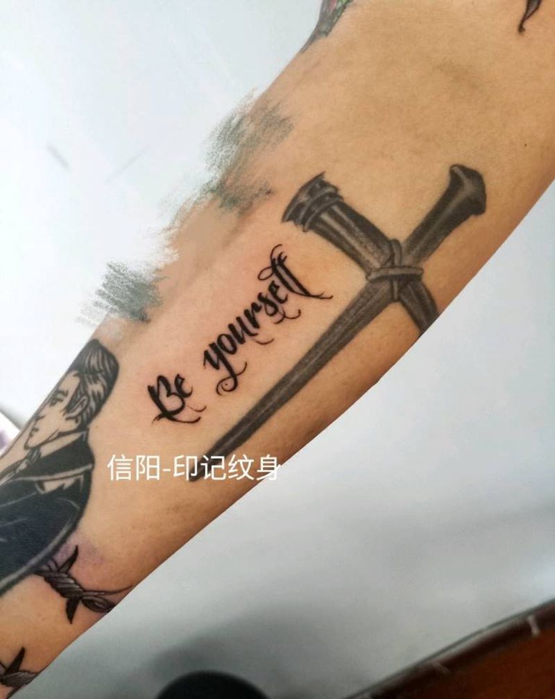 当前位置: 首页 >河南省信阳市纹身店-印记纹身店纹身图案>十字架,字母纹身图片_手臂纹身图案