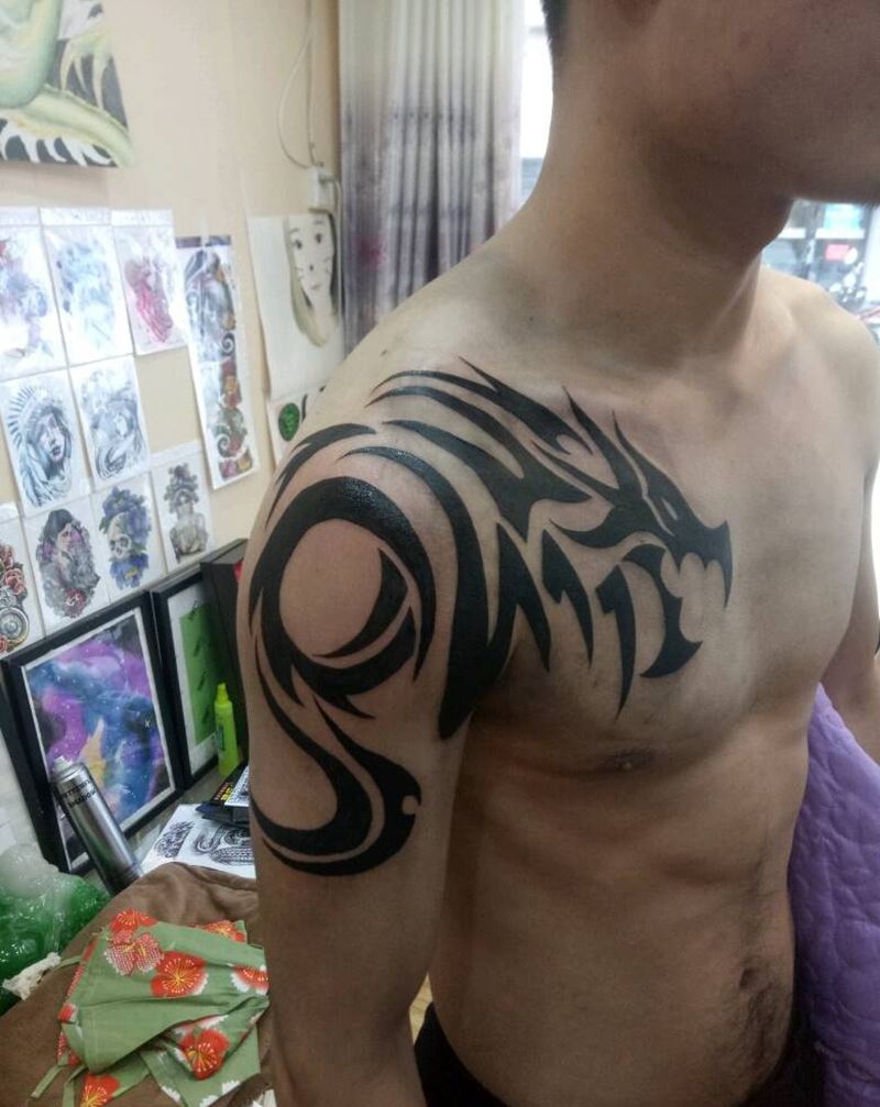 • 纹身吧推荐的披肩图腾半胛纹身图案作品展示