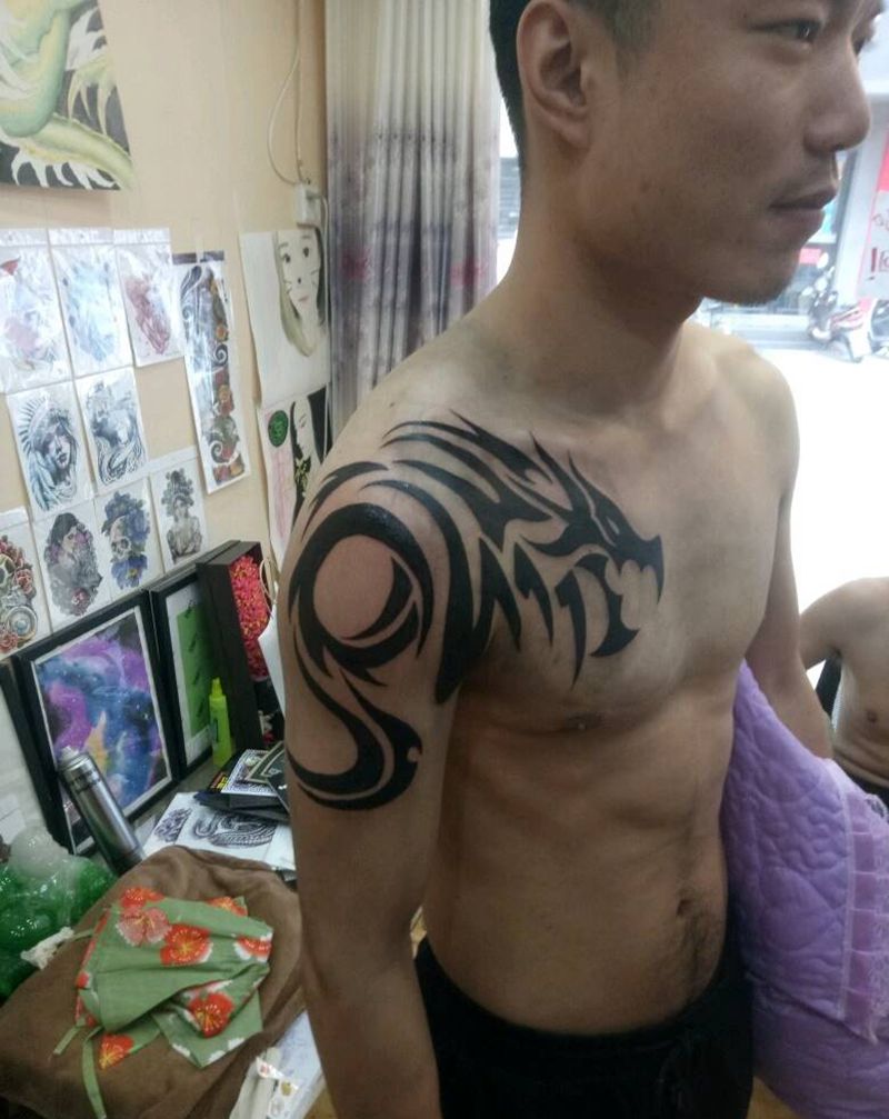 • 纹身吧推荐的披肩图腾半胛纹身图案作品展示