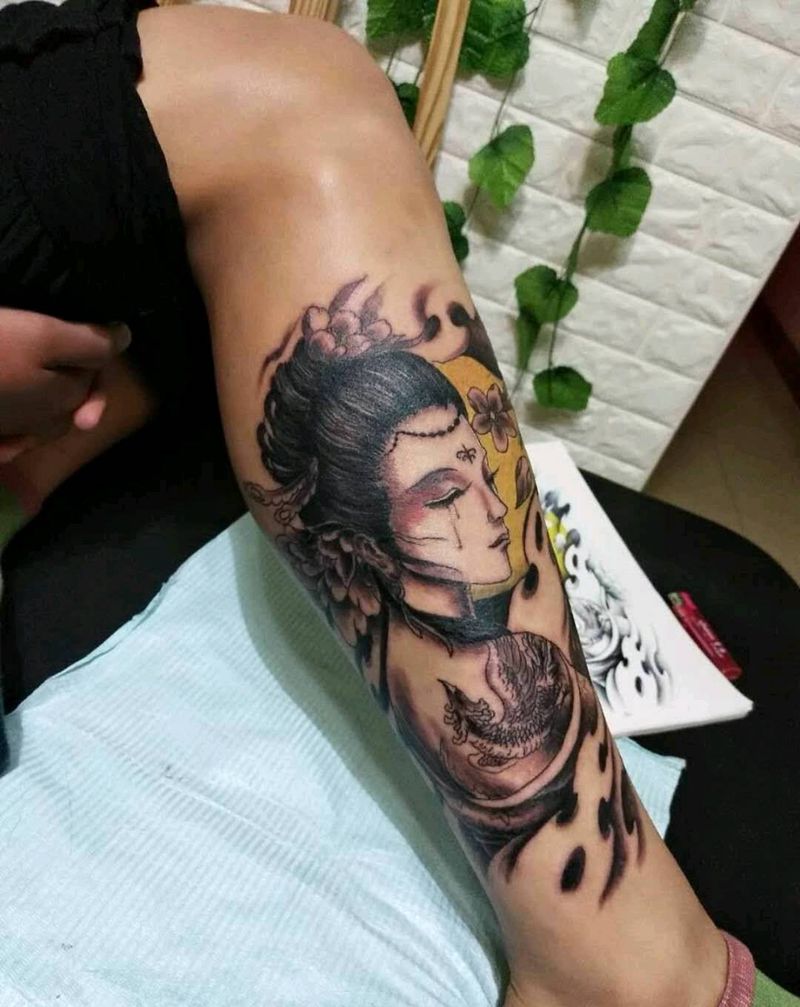 • T网红王老大花腿龙纹身图片_腿部新传统纹身图案